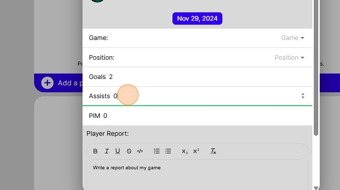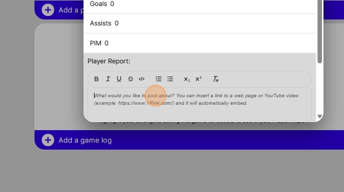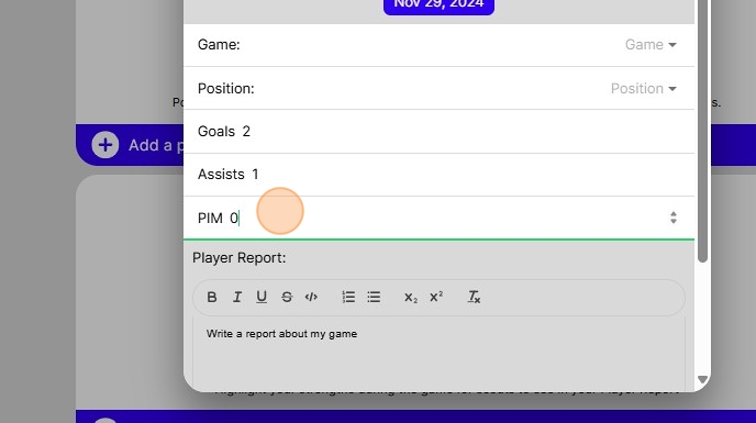 11. Here you can type in your player report and your perspective on game for scouts to see.
