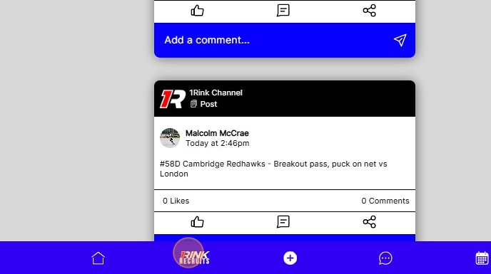 Tip: The content you post in your feed also shows up in the 1Rink Channel for everyone to see, to maximize the chances of helping you get noticed.