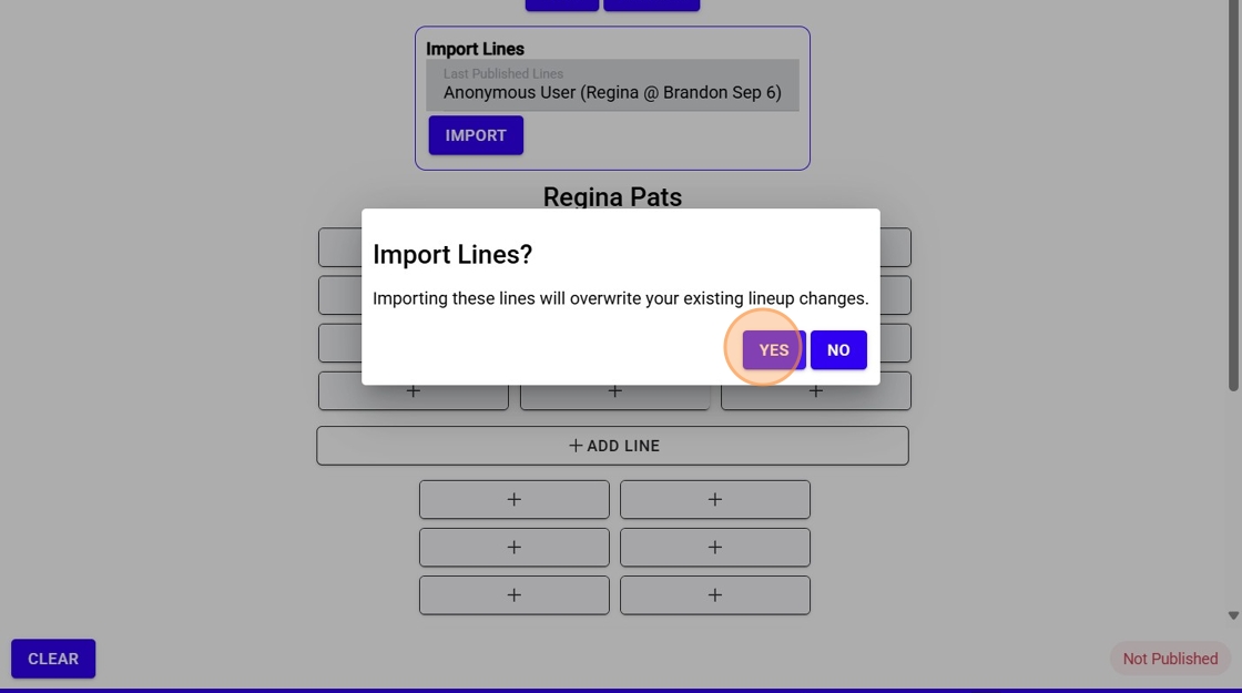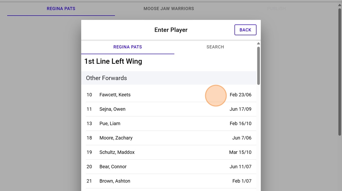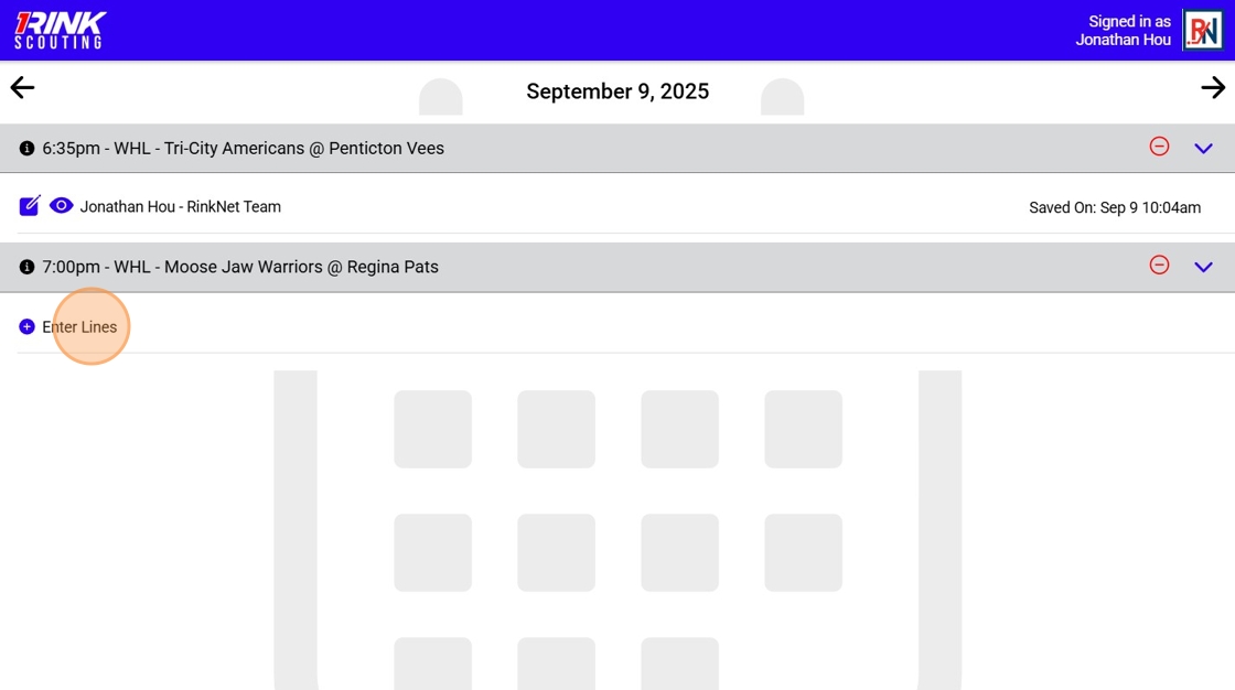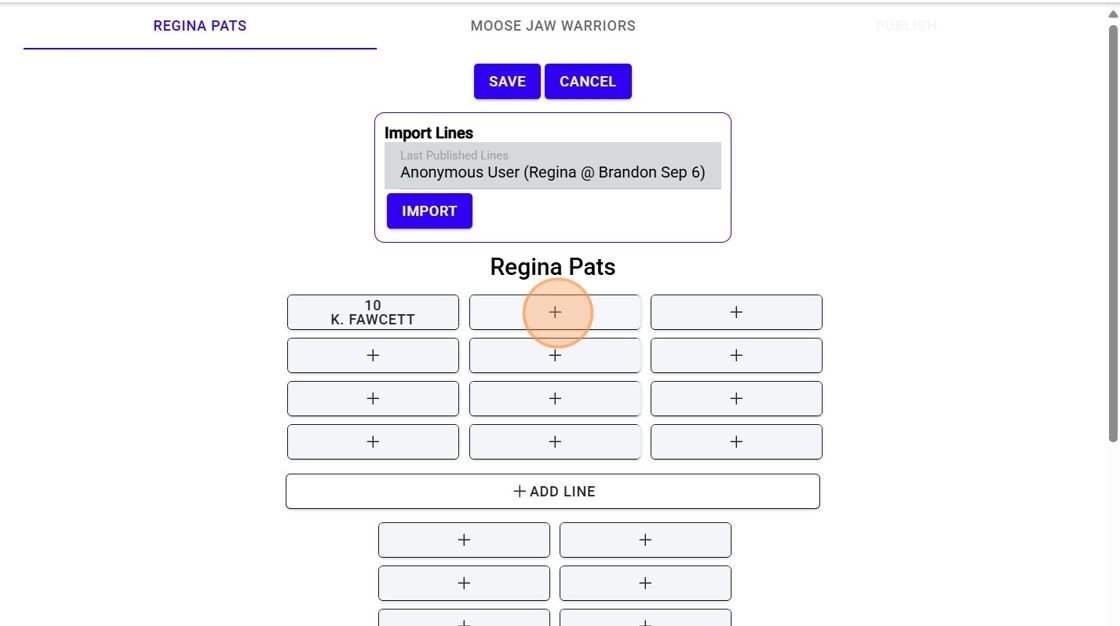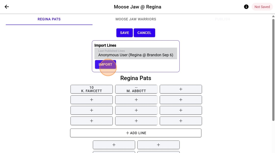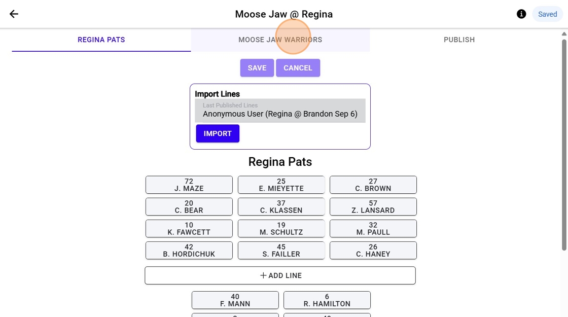 19. Click "Moose Jaw Warriors" to enter lines for the other team.