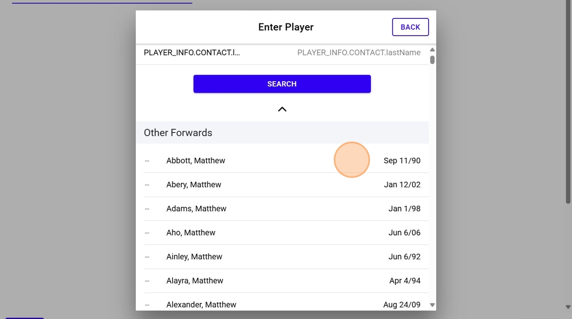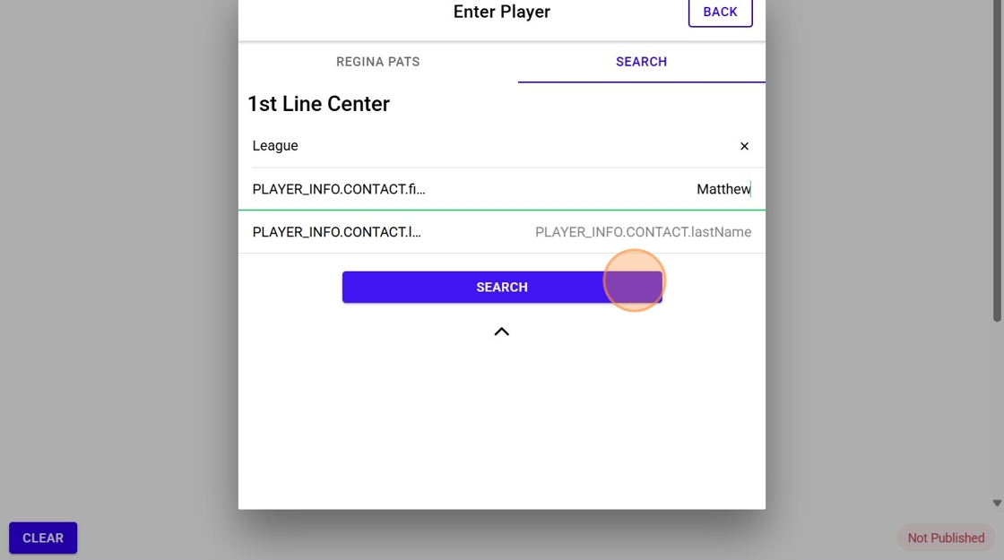 13. If the player is not showing up in the roster, you can click "Search" to find a player.