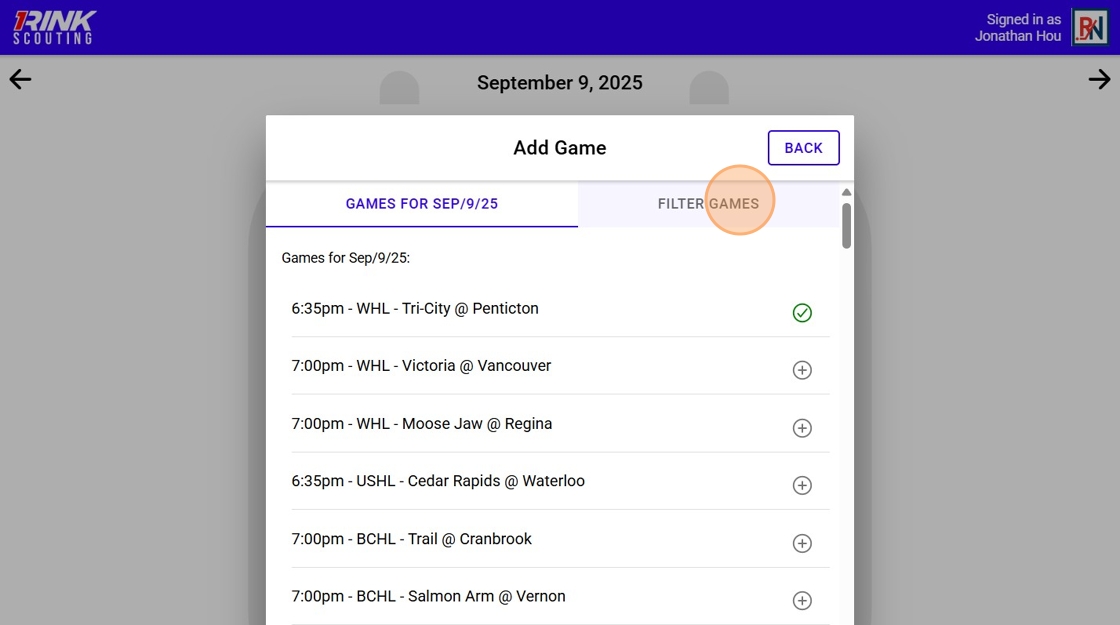 3. Click "Filter Games" if you want to filter the games by a certain league or team.