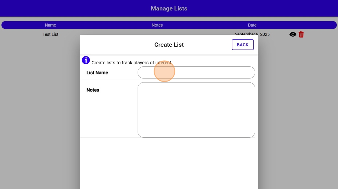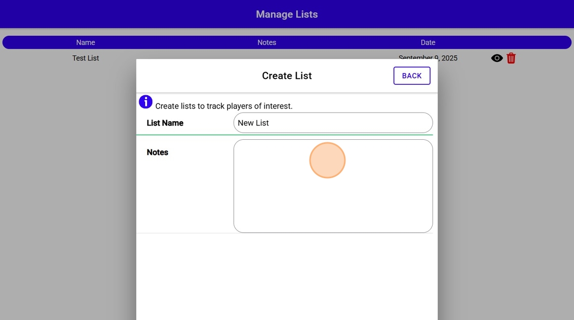 Create a New Scouting List and Add Players