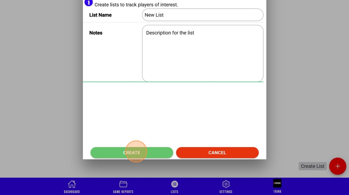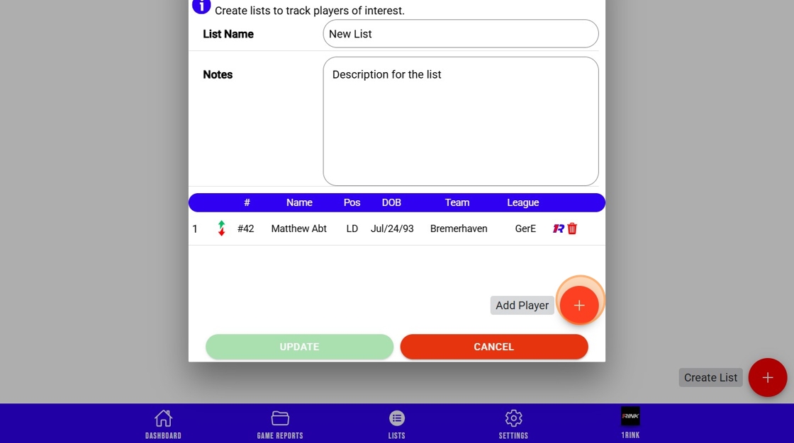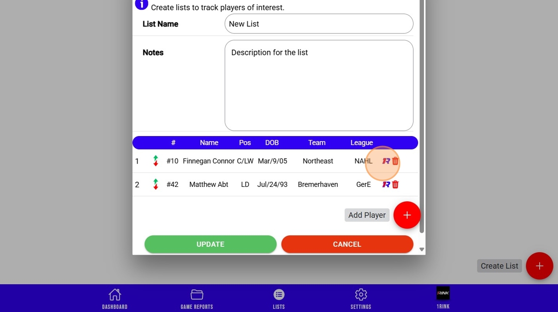 1Rink Scouting: Create a New Scouting List and Add Players