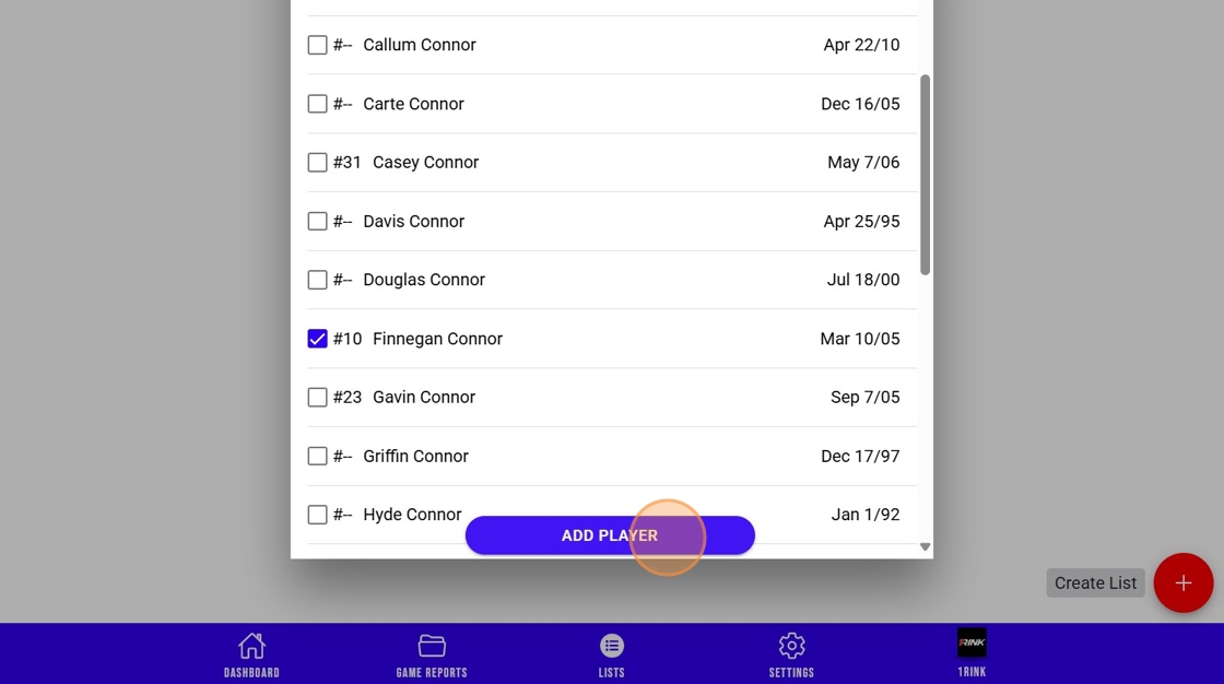 9. Select the players you would like to add.