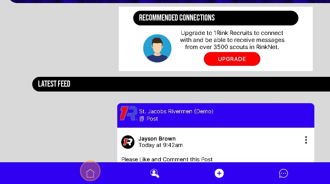 9. If you have 1Rink Recruit subscription you can quickly post to your Own Profile using this icon.