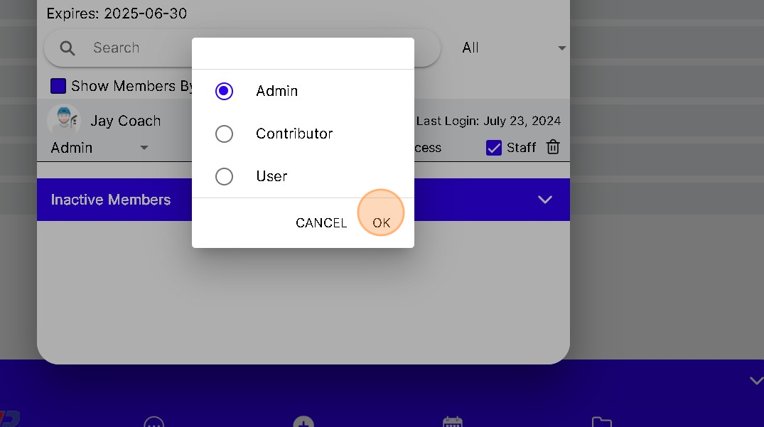 5. Click "OK" when have selected the correct User Type for the portal member.