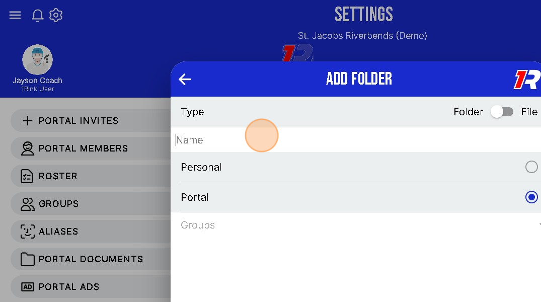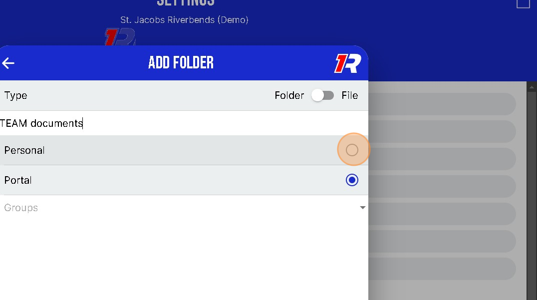 7. You can select whether the Folder will be "Personal" or for the Entire "Portal"