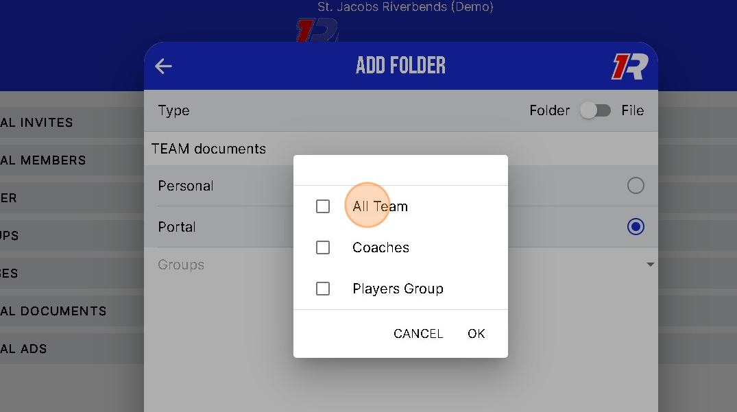 This guide provides step-by-step instructions on how to add a Folder for Team documents on the 1Rink platform. By following these steps, users can easily organize and manage their team documents within the specified group.